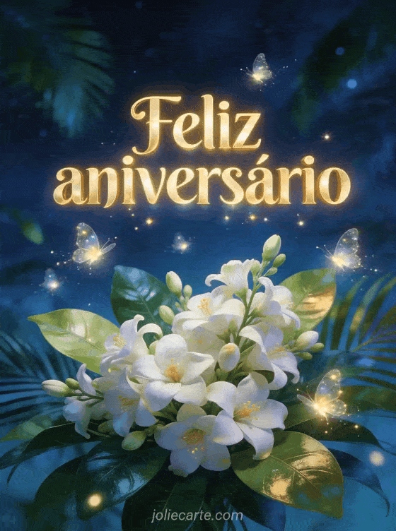 feliz aniversário mulher gif animado grátis uma saudação poética de aniversário com jasmim e vaga-lumes