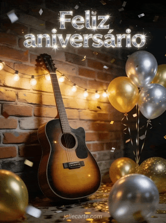 Compartilhe uma mensagem de aniversário cheia de energia com este cartão de celebração com guitarra. Você também pode enviar texto de aniversário para pai simples, texto de aniversário papá com humor ou gif feliz aniversário papai.
