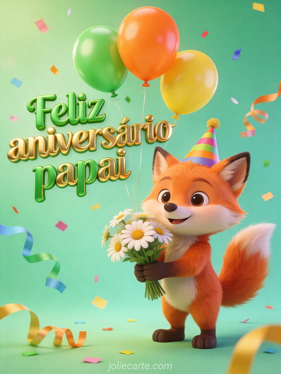 Deixe o aniversário do seu papai ainda mais especial com este cartão fofo de raposa, margaridas e balões coloridos. Você também pode ver aniversário papai sms, feliz aniversário sogro ou feliz aniversário pai imagem.
