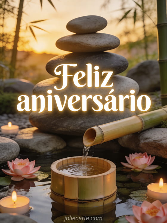 Envie um sereno feliz aniversário com este lindo cartão de inspiração zen. Descubra também um cartão de votos de aniversário, um cartão de aniversário com cachorro ou um feliz aniversário com narciso.