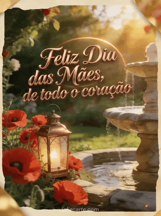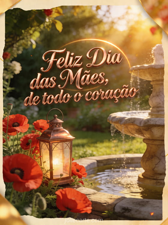 Compartilhe um cartão sincero de Dia das Mães com papoulas vermelhas, uma lanterna brilhante, uma fonte de pedra e luz dourada de jardim. Veja também um poema curto para o Dia das Mães, imagens gratuitas do Dia das Mães ou feliz domingo feliz Dia das Mães.