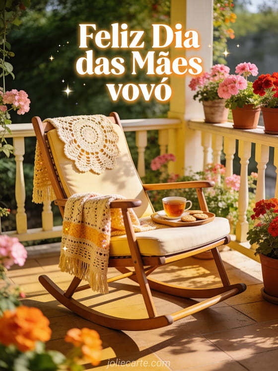 Celebre o Dia das Mães para a vovó com uma cena de varanda terna e nostálgica. Você também pode ver texto para minha filha para o dia das mães, feliz dia das mães para minha filha e cibercartão dia das mães.