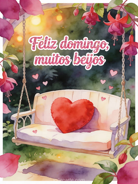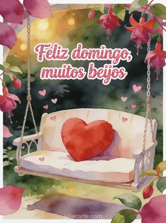 Compartilhe uma saudação carinhosa de domingo com letras framboesa, brilho suave, uma almofada vermelha em forma de coração, flores fúcsia pendentes, corações flutuantes e luz quente de balanço de jardim. Você também pode enviar mensagens de feliz domingo, uma café feliz domingo amizade imagem ou bom domingo belas imagens animadas.