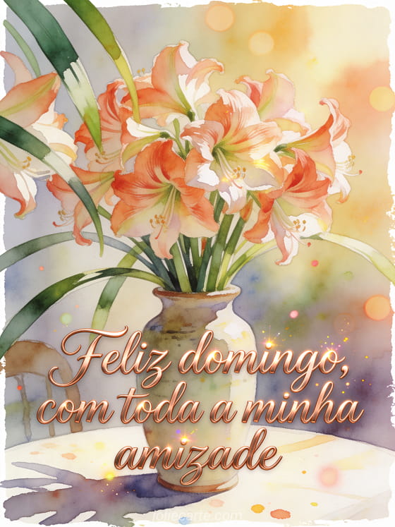 Compartilhe um cartão caloroso de feliz domingo com um buquê generoso de flores de amarilis em um vaso de cerâmica sobre uma mesa iluminada pelo sol. Você também pode enviar uma feliz domingo cinza imagem, bom domingo ensolarado gifs ou um feliz domingo mulher gif.