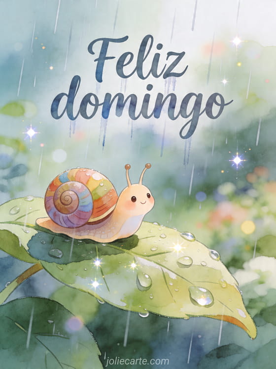 Compartilhe um domingo sereno com este cartão delicado mostrando um caracol fofo de concha colorida deslizando sobre uma folha molhada coberta de gotas brilhantes. Você também pode ver feliz domingo imagem grátis, domingo abençoado ou citações zen bom domingo.