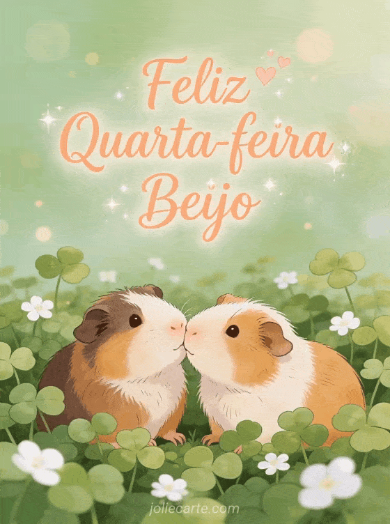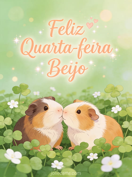 Compartilhe um doce beijo de quarta-feira com este adorável cartão de dois porquinhos-da-índia se esfregando num suave leito de trevo. Descubra também um café bom dia feliz quarta-feira ou um foto quarta ensolarada.