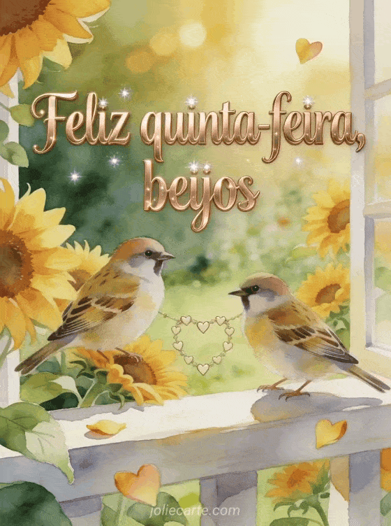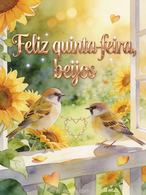 Compartilhe uma mensagem luminosa de feliz quinta-feira com beijos, girassóis e um clima de jardim em aquarela. Veja também feliz quinta-feira a todos imagens, bom dia quinta-feira gif ou cartões virtuais grátis boa quinta-feira.