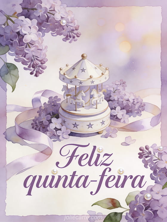 Deseje feliz quinta-feira com uma caixa de música de porcelana, padrões de estrelas, flores lilás e fitas de cetim em luz pastel de aquarela. Você também pode enviar feliz quinta-feira chuva, bom dia feliz quinta-feira e tenha um bom dia ou feliz quinta-feira imagens de flores.