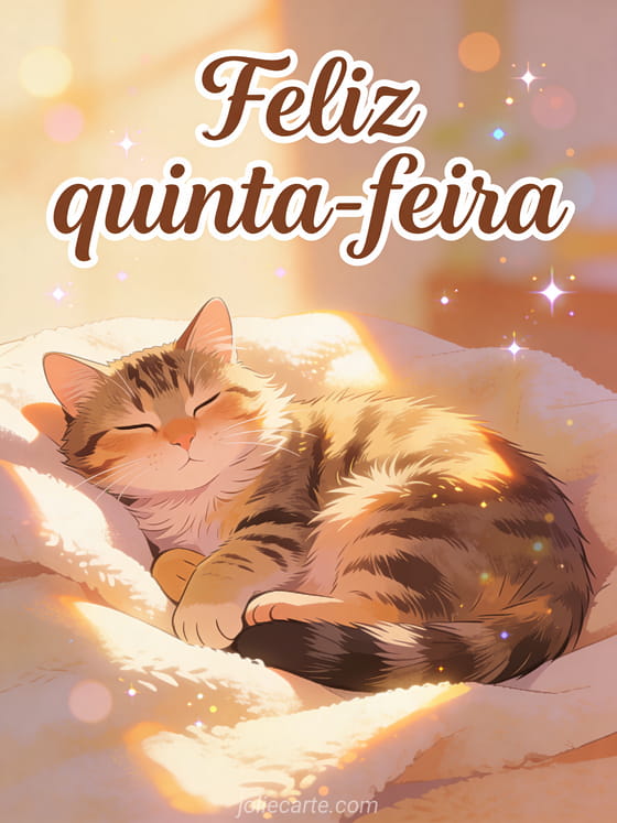 Compartilhe feliz quinta-feira gato com um gato tigrado fofo descansando em um raio de sol sobre um cobertor suave, contente e sonolento. Envie mais desejos tranquilos com cartão bom dia quinta-feira, feliz quinta-feira mensagem ou feliz quinta-feira citação positiva.