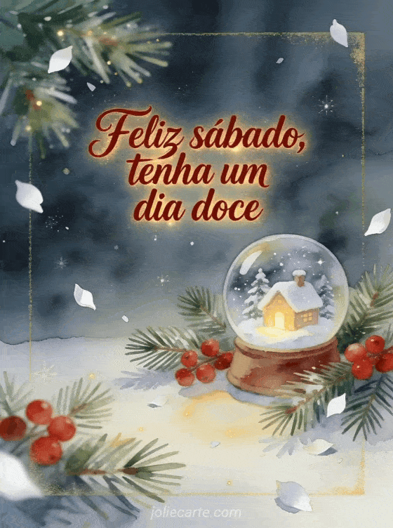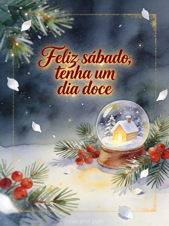 Compartilhe uma mensagem doce de sábado com um globo de neve, ramos de pinheiro, bagas vermelhas e uma pequena casinha nevada. Você também pode enviar gifs animados de feliz sábado, feliz sábado e bom fim de semana imagens ou uma feliz sábado zen imagem.