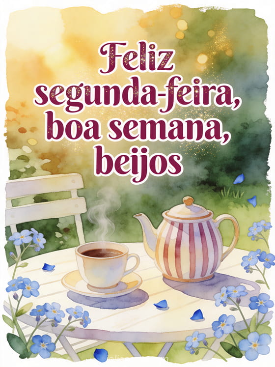 Comece a semana com flores de miosótis, pétalas azuis, uma xícara de café fumegante e um bule listrado sobre uma mesa de jardim ensolarada. Você também pode enviar boa semana beijos Natal, beijos e boa semana ou beijos de segunda-feira boa semana.