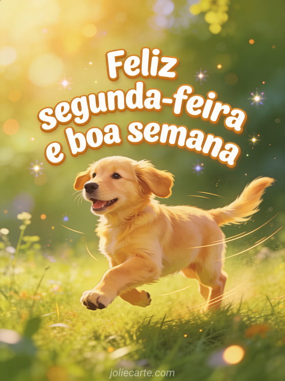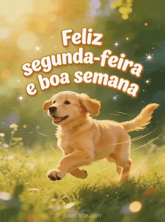 Envie uma saudação cheia de energia de feliz segunda-feira e boa semana com letras em estilo de animação e um filhote de golden retriever alegre correndo por uma campina. Veja também feliz segunda-feira café imagem, feliz segunda-feira bom dia boa semana ou bom dia e feliz segunda-feira gif.