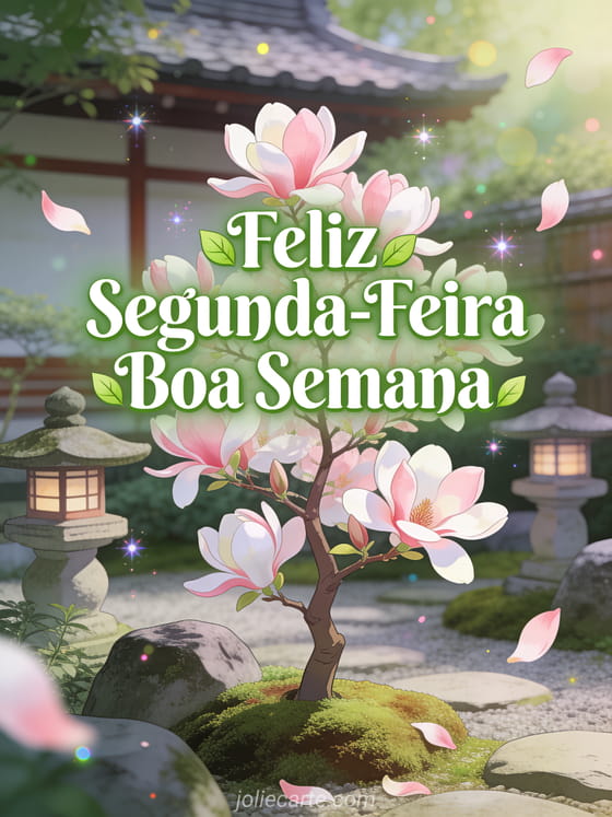 Comece a semana com positividade com este lindo cartão que apresenta uma magnólia em flor em um jardim japonês, evocando renovação e energia da segunda-feira. Descubra também um feliz segunda-feira boa semana café ou uma boa segunda-feira boa semana imagem.