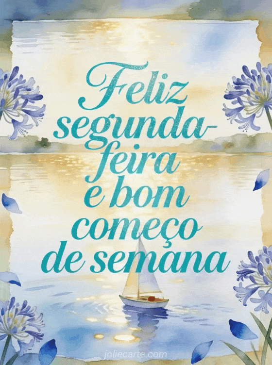Deseje feliz segunda-feira e bom começo de semana com um pequeno veleiro em um lago brilhante, flores de agapanto e reflexos dourados. Veja também feliz segunda-feira imagens gifs, bom dia de segunda-feira gifs ou boa semana e feliz segunda-feira gifs.