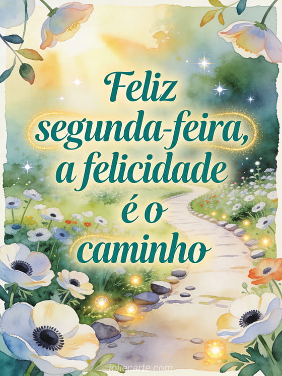 Compartilhe uma citação serena de feliz segunda-feira com um caminho de jardim em aquarela cercado por anêmonas brilhantes, pequenas pedras luminosas e uma luz suave de amanhecer. Você também pode enviar uma feliz segunda-feira na chuva imagem, um feliz segunda-feira e boa semana gif animado ou bom dia segunda-feira imagens.