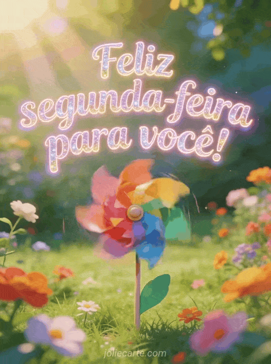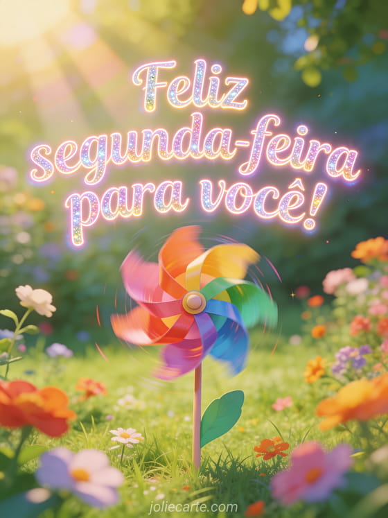 Envie uma saudação alegre de feliz segunda-feira com um catavento colorido em um jardim ensolarado. Veja também um feliz segunda-feira beijos gif animado, umas imagens grátis feliz segunda-feira e boa semana ou uma positiva boa segunda-feira citação.
