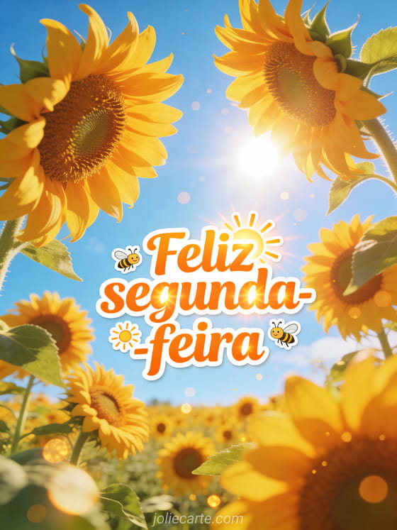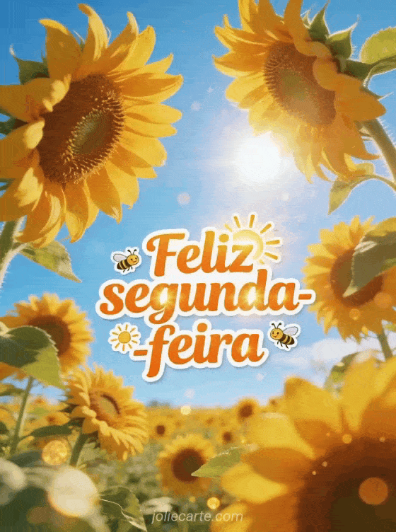 Envie feliz segunda-feira humor gif animado com letras laranja vivo, pequenos sóis radiantes, abelhas alegres e um campo de girassóis gigantes sob um céu azul claro. Compartilhe um desejo alegre para começar a semana e veja também feliz segunda-feira imagem cintilante, boa segunda-feira boa semana gif animado ou feliz segunda-feira beijos gifs.