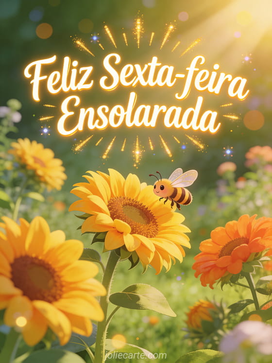 Feliz sexta-feira ensolarada um alegre e luminoso cumprimento de sexta-feira ensolarada com girassóis e uma abelha