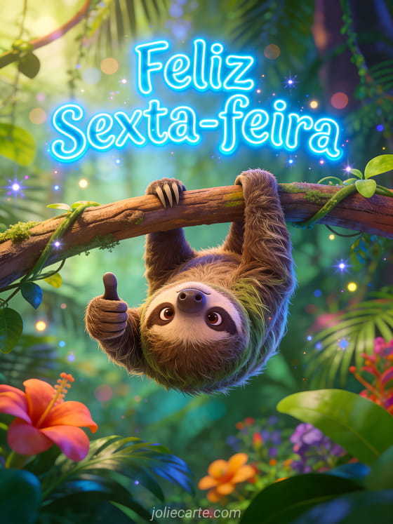 Feliz sexta-feira gif humor um hilariante gif de feliz sexta-feira com um bicho-preguiça pendurado ao contrário na selva tropical