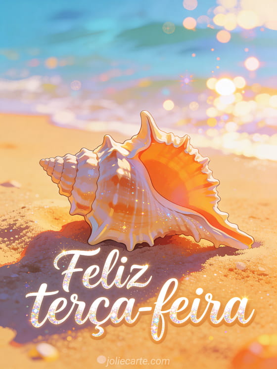 Compartilhe imagens de feliz terça-feira para Facebook com caligrafia viva, uma concha brilhante sobre areia quente e reflexos do mar. Você também pode enviar uma feliz terça-feira debaixo de chuva imagem, feliz terça-feira gifs ou um feliz terça-feira debaixo de chuva gif.