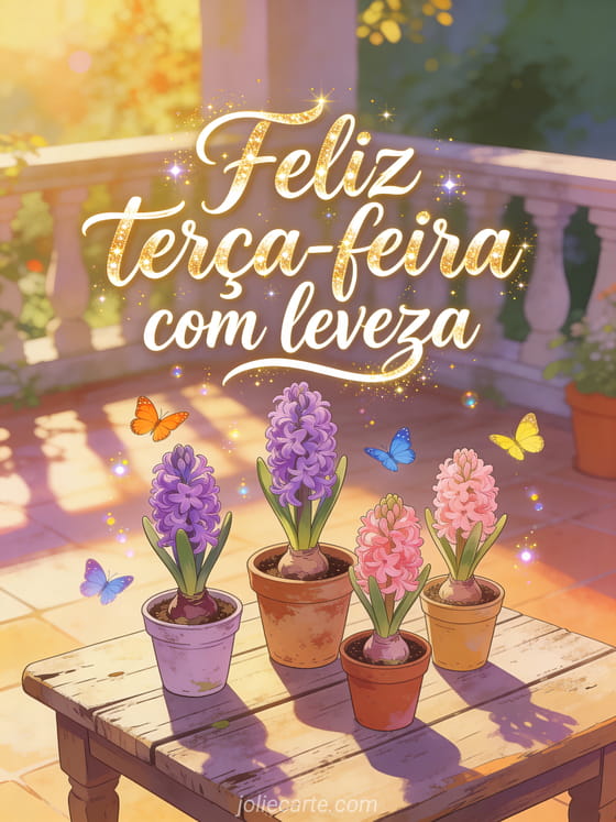 Compartilhe lindas imagens animadas de feliz terça-feira com letras fluidas, vasos de jacintos em um terraço ensolarado e borboletas coloridas na luz. Você também pode enviar uma feliz terça-feira chuva imagem, feliz terça-feira Facebook imagens ou uma feliz terça-feira debaixo de chuva imagem.