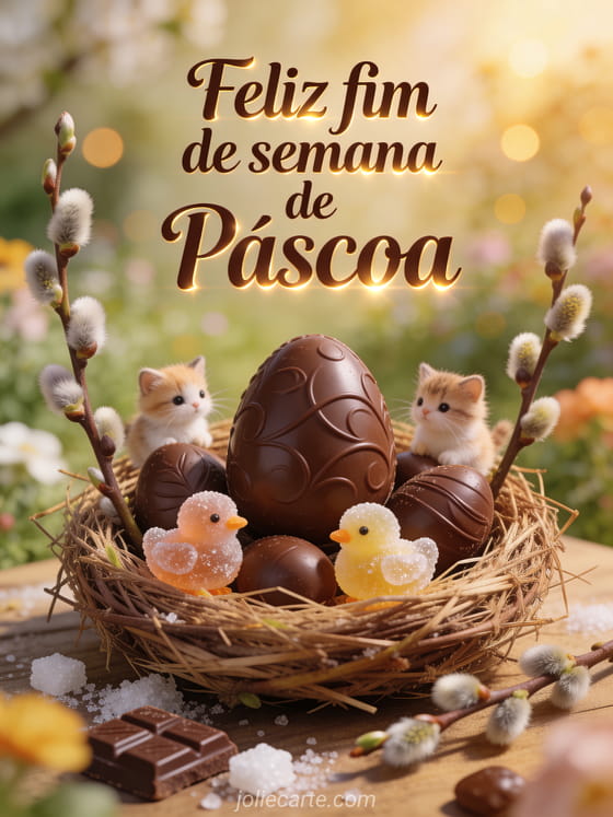 Compartilhe este bonito cartão de fim de semana de páscoa e deseje a todos umas felizes festas. Descubra também um cartão de feliz segunda-feira de páscoa ou um cartão de feliz domingo de páscoa.