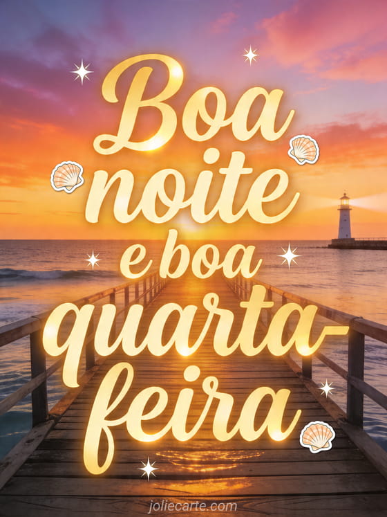 Boa noite e boa quarta-feira uma saudação acolhedora de fim de dia junto ao mar