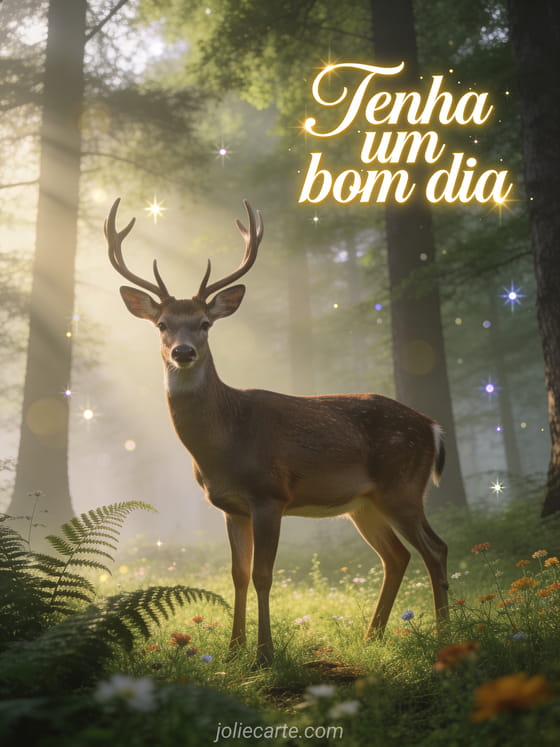 Envie esta tranquila foto de bom dia terça com um majestoso cervo ao amanhecer para desejar um bom dia. Descubra também um cartão bom dia terça café ou um cartão linda imagem de feliz terça-feira.