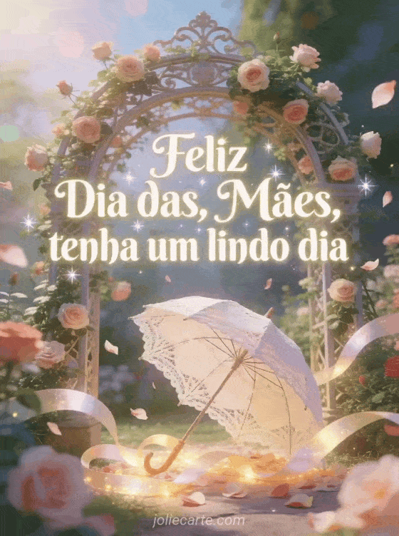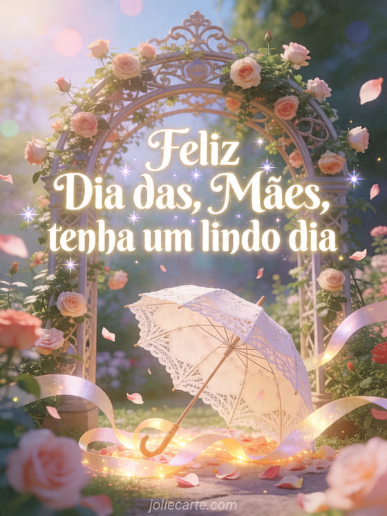 Ofereça um lindo momento de Dia das Mães com um arco de jardim ilustrado, rosas antigas, pétalas ao vento e fitas festivas. Veja também mensagens para o Dia das Mães, poesia Dia das Mães beijos ou feliz Dia das Mães supermãe.