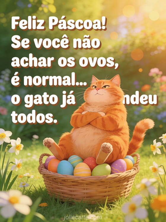 Compartilhe este hilariante cartão de gato de páscoa com humor e alegre as festas. Descubra também um cartão de ovo de páscoa humor ou um cartão de Páscoa engraçada humor.