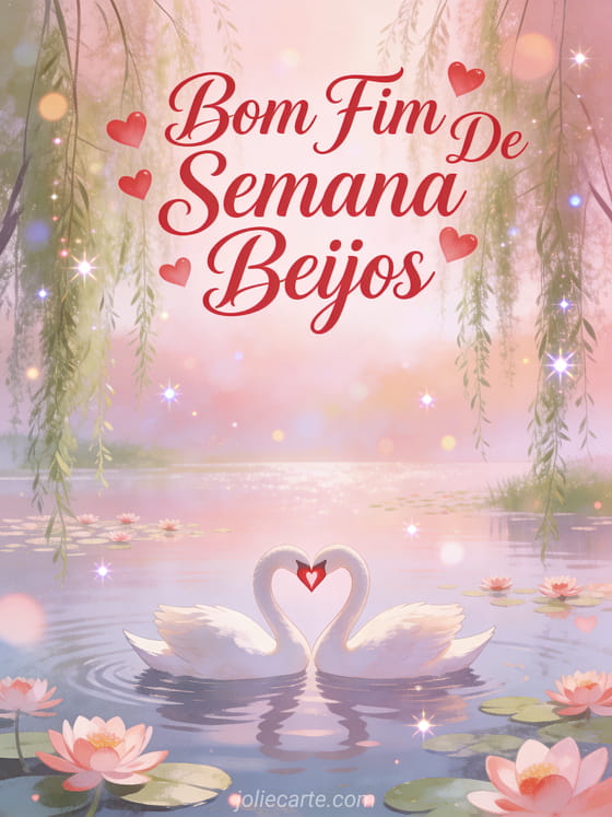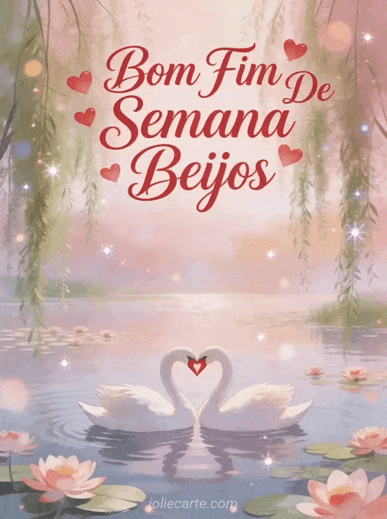 Compartilhe uma saudação animada terna com dois cisnes formando um coração entre nenúfares. Descubra também um bom fim de semana imagens ou um bom fim de semana para vocês.