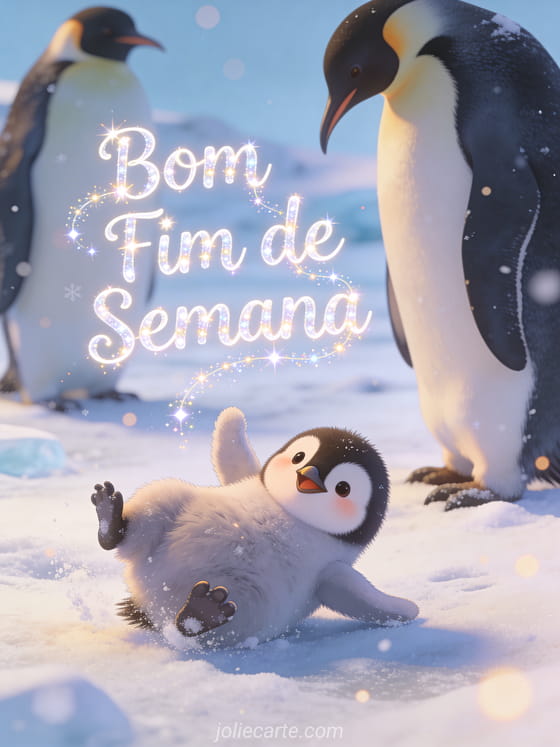 Deseje um bom fim de semana com este cartão animado divertido com um pinguim bebê desajeitado. Veja também imagens de bom fim de semana ou um cartão bom fim de semana.
