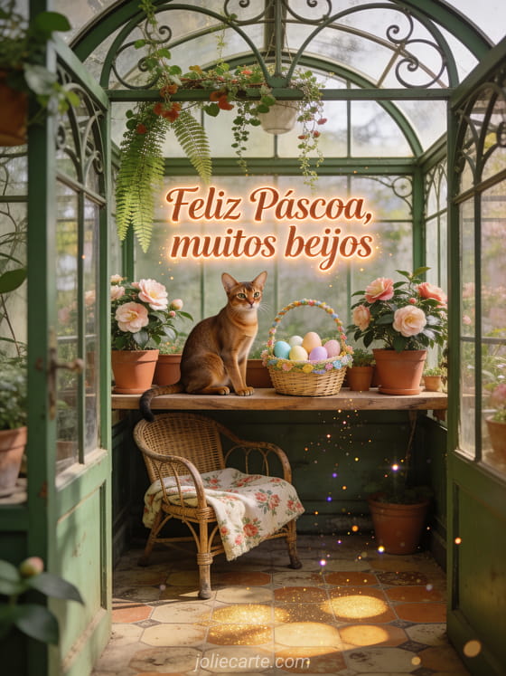 Compartilhe este terno gif de beijos de Páscoa com um adorável gato abissínio e camélias de primavera. Descubra também gif de Páscoa grátis ou um cartão de Páscoa.