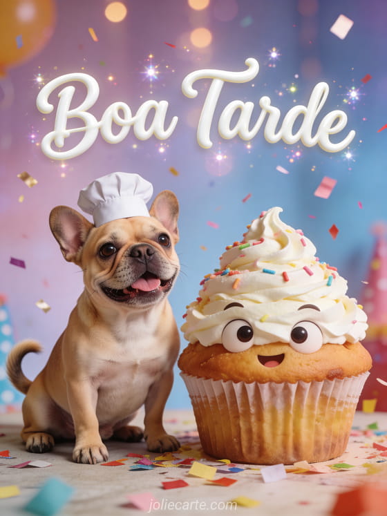 Compartilhe um gif engraçado de boa tarde com este hilário cartão de buldogue francês chef. Descubra também imagem boa tarde gatinho ou bom apetite e boa tarde.
