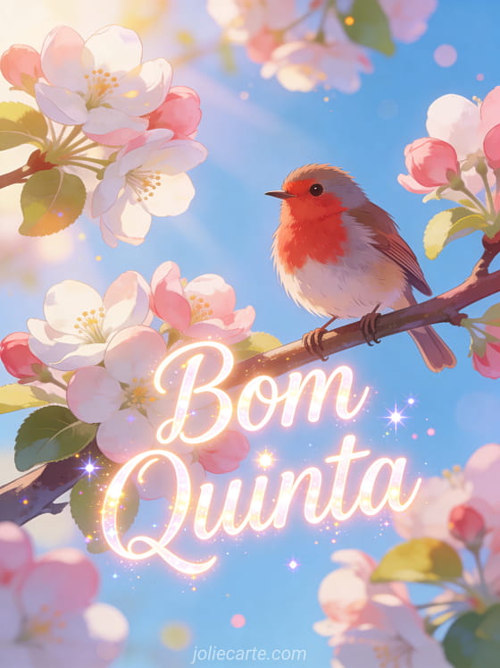 Alegre a quinta-feira de alguém com este cartão animado ensolarado com um adorável pintarroxo em flores de macieira. Veja também feliz quinta-feira beijos ou feliz quinta na chuva.
