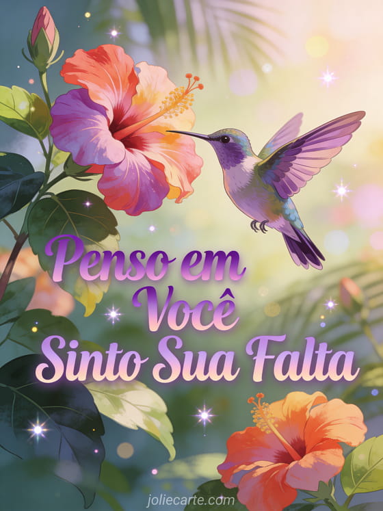 Envie um vibrante penso em vocĂȘ sinto sua falta para expressar o seu amor e saudade. Descubra tambĂ©m um cartĂŁo te amo sinto sua falta, um gif sinto sua falta ou um gif romĂąntico sinto sua falta.