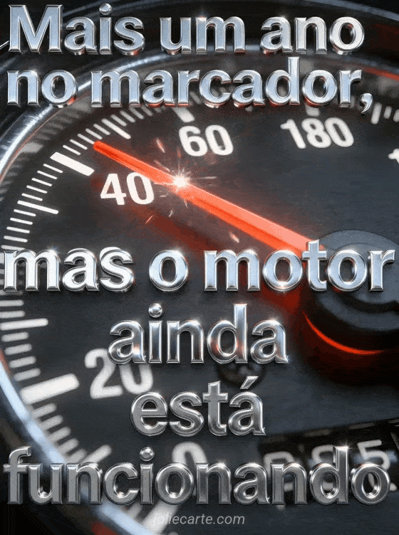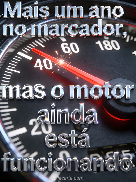 Envie este cartão de humor de aniversário com um marcador de velocidade vintage e faíscas. Descubra também um provérbio aniversário humor ou um texto engraçado de aniversário.
