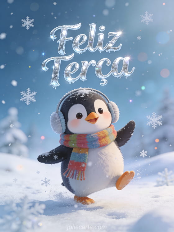 Humor feliz terça fria um divertido saludo de terça fria com um adorável pinguim em uma cena invernal
