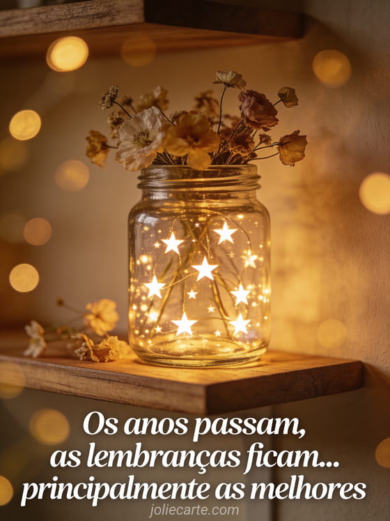 Compartilhe este cartão fotorrealista com frasco iluminado, flores secas e bokeh dourado para um clima nostálgico. Você também pode ver imagens aniversário humor homem, homem gif aniversário humor e feliz aniversário engraçado.