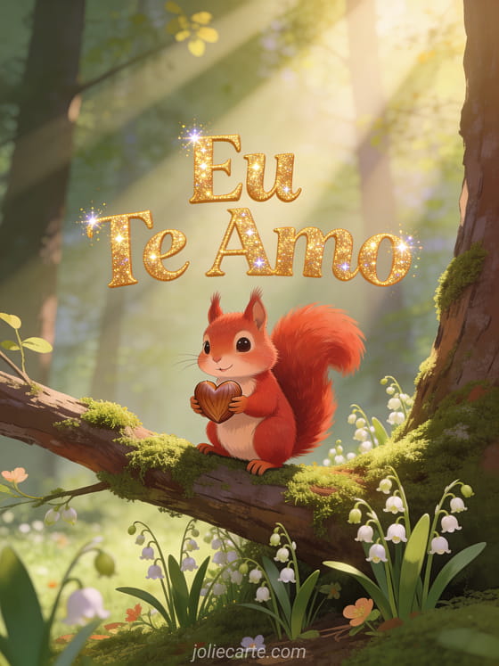 Eu te amo uma fofa mensagem de amor de um adorável esquilo