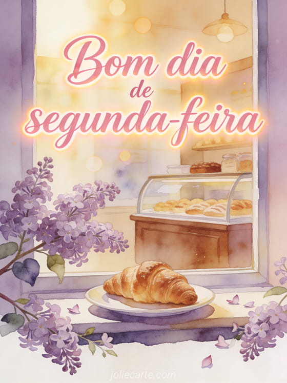 Comece a segunda-feira com suavidade com um cartão em aquarela de uma vitrine de padaria, um prato com croissant, ramos de lilás em flor e luz dourada da manhã. Você também pode enviar feliz segunda-feira flores imagem, compartilhar feliz segunda-feira nevada imagem ou escolher feliz segunda-feira bom começo de semana imagens.