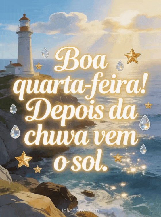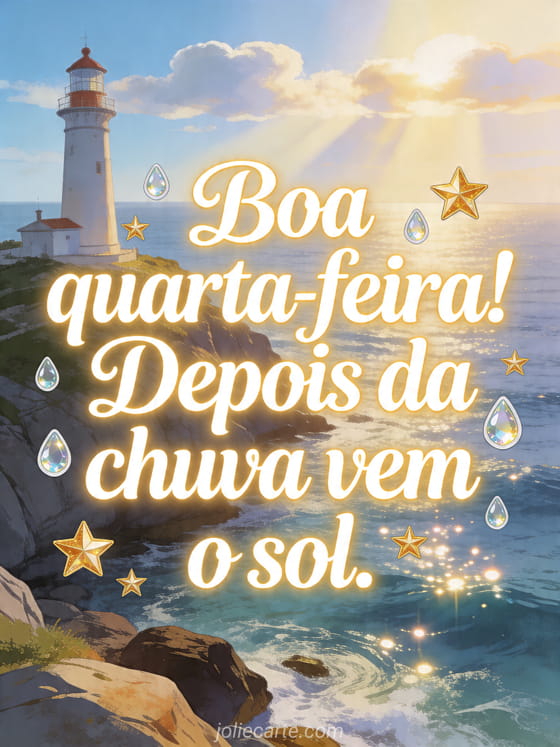 Boa quarta-feira! Depois da chuva vem o sol. uma frase inspiradora de meio de semana à beira-mar