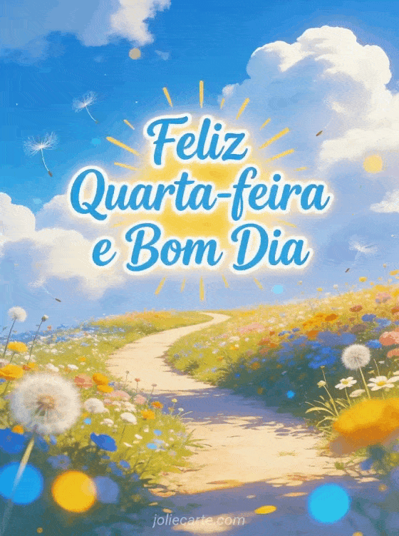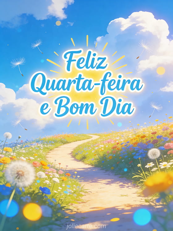 Alegre a quarta-feira de alguém e deseje-lhe um bom dia com este ensolarado cartão de um caminho sinuoso por um colorido prado de flores. Descubra também feliz quarta-feira imagem engraçada ou imagem boa quarta-feira ensolarada.