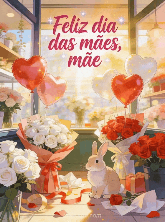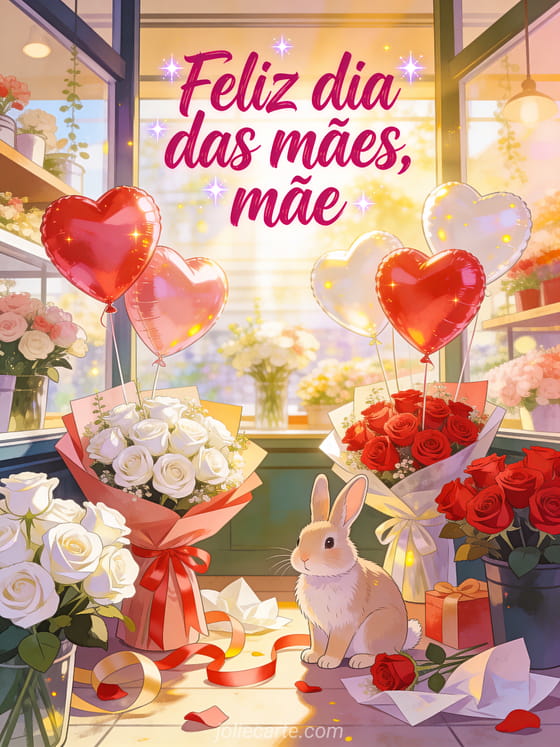 Envie este cartão luminoso para celebrar com flores, presentes e alegria. Você também pode ver poesia para o dia das mães, fotos de feliz dia das mães ou buquê de flores para o dia das mães.