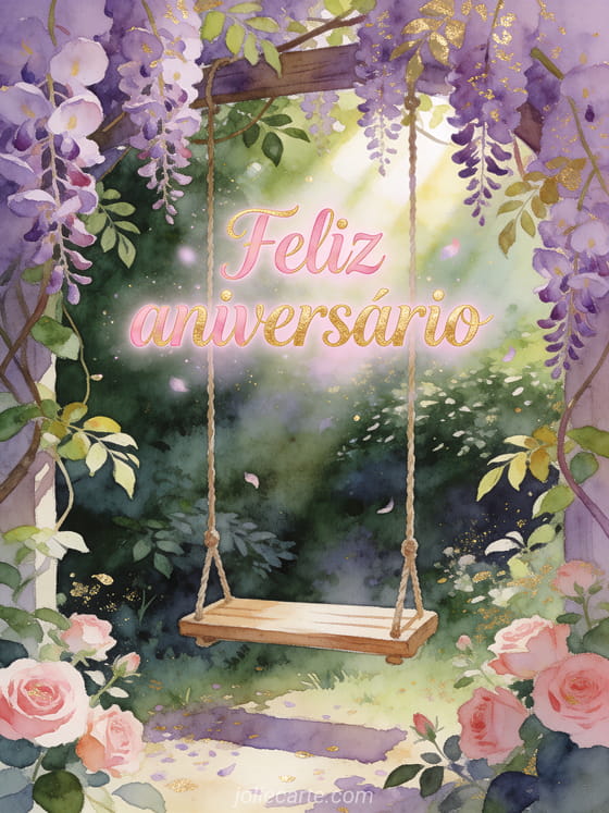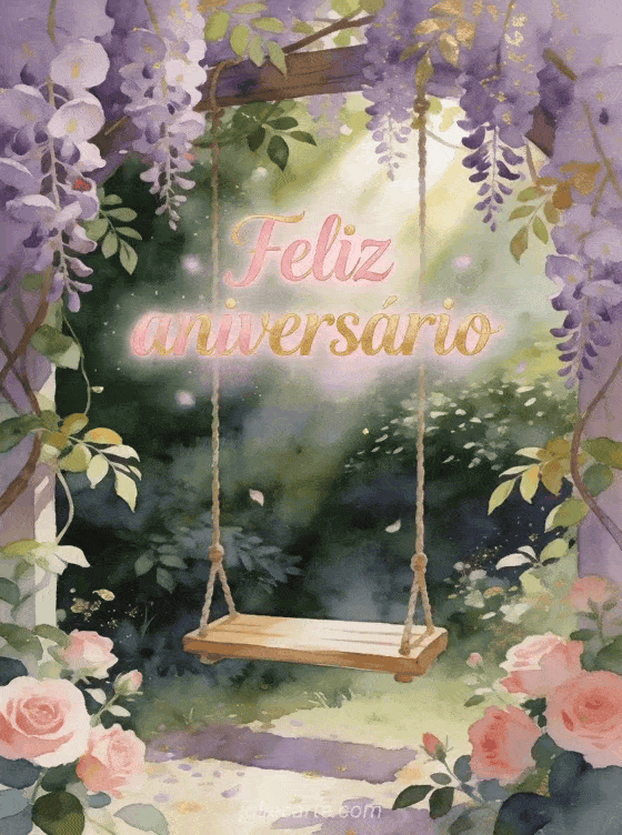 Compartilhe este cartão sonhador com jardim secreto, balanço envolto em glicínia e estilo aquarela de conto de fadas. Você também pode ver gif humor aniversário mulher, feliz aniversário mulher texto e dromedário cartão aniversário mulher.