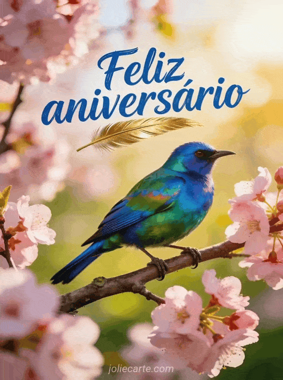 Envie um alegre feliz aniversário com este lindo cartão de pássaro colorido. Descubra também um cartão gif de aniversário com jardim, um cartão floral de aniversário ou um cartão zen de aniversário.