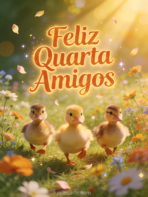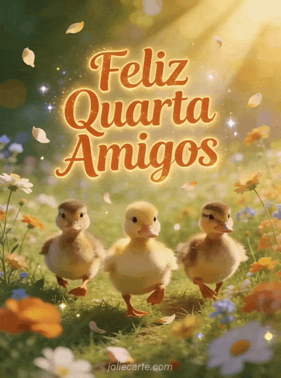 Compartilhe uma alegre quarta-feira com seus amigos graças a esse fofo cartão de patinhos. Descubra também um imagem boa tarde de quarta-feira ou um gif bom dia de quarta-feira.