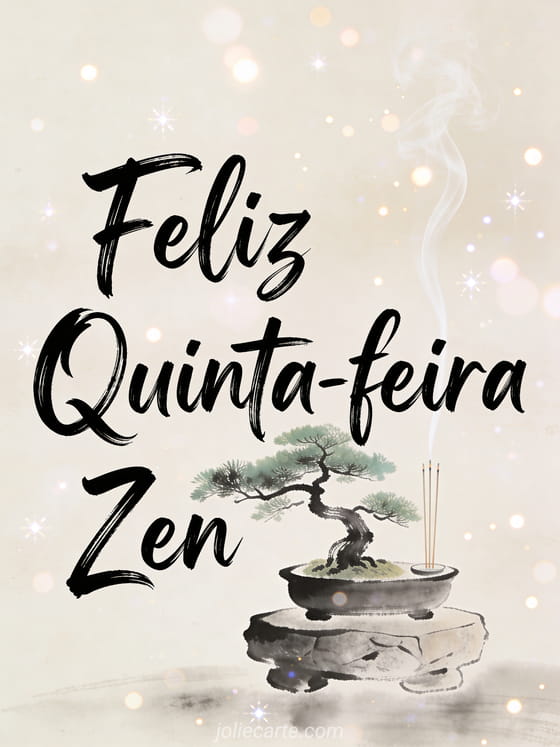 Compartilhe uma minimalista saudação de quinta-feira com um sereno bonsai sobre um pedestal de pedra e fumaça de incenso se elevando suavemente. Confira também um feliz quinta-feira coragem ou um lindo dia de quinta-feira.