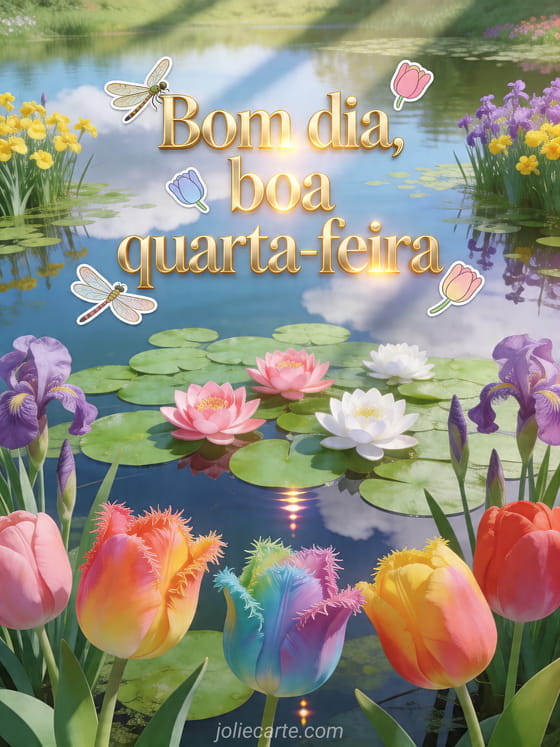 Compartilhe uma serena saudação de bom dia, boa quarta-feira para levar frescor e calma ao dia. Você também pode descobrir belas imagens para boa quarta-feira, imagem para desejar boa quarta-feira e citação imagem boa quarta-feira.