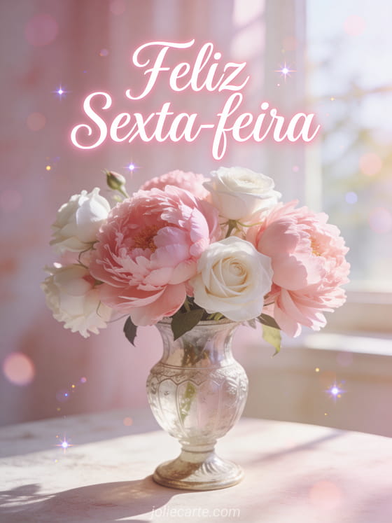 Imagem grátis feliz sexta-feira uma romântica e elegante imagem grátis de feliz sexta-feira com peônias rosas e rosas brancas